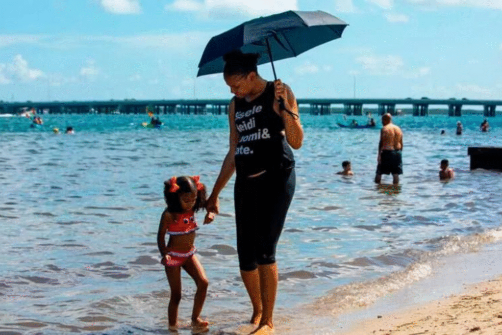 Now, decades later, another Athalie — Athalie Edwards — stands barefoot near the water’s edge, gazing out at the waves that once taught her family how to swim. She recalls the stories passed down of people ferrying across the bay before the causeway even existed.